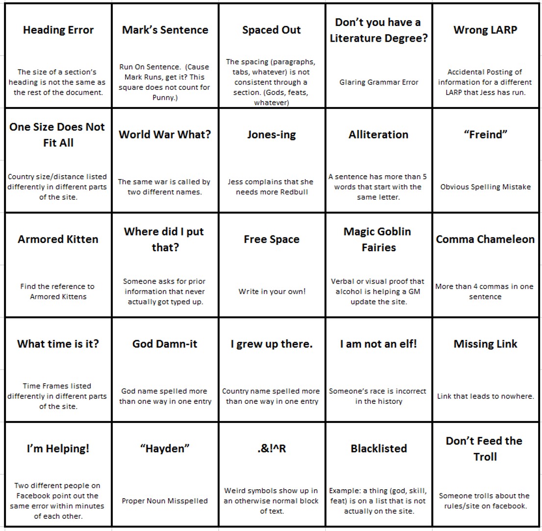 Website Update Bingo